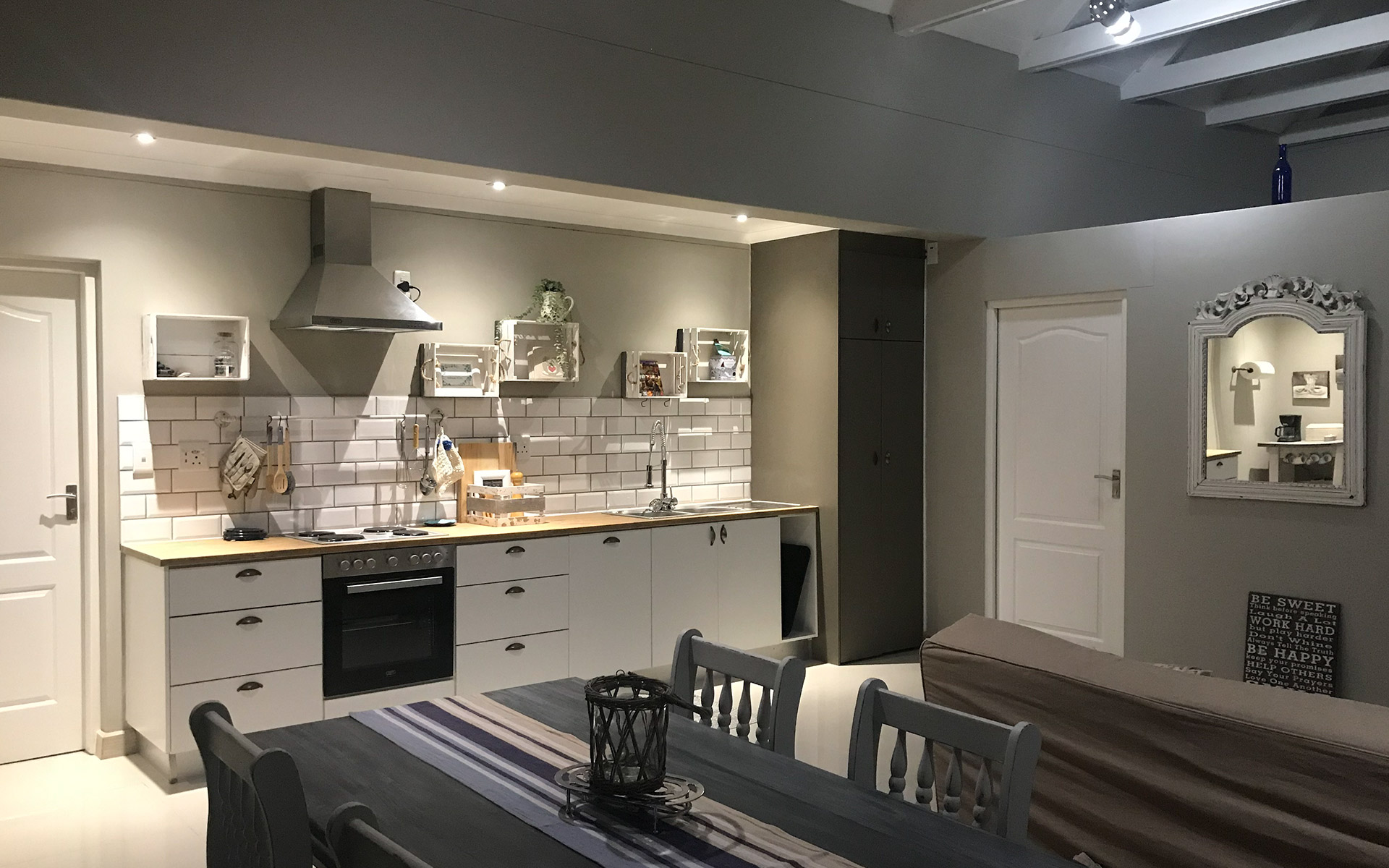 2 elegant self-catering units in Swakopmund close to the Dome and the beach, offering all the comforts and amenities of home. Each unit comes with a full en suite bedroom and a sleeper couch in the living room. There is a door joining the 2 units, so both units can be rented together for larger groups and families. Each unit also comes with a garage that can be rented out separately